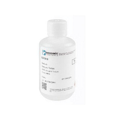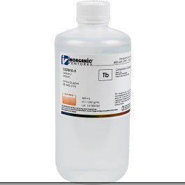 Inorganic Ventures' 10,000 ppm (µg/mL) Terbium for ICP is a certified reference material set in a nitric acid matrix for stability. This terbium standard is Traceable to NIST and manufactured in accordance with Inorganic Ventures' stringent Quality Assurance guidelines.