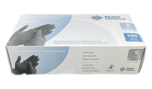 777-350 | Phare Medica 5 mil Black Nitrile Medical Gloves - Box of 100
