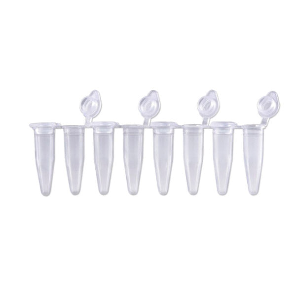 8-Strip PCR Tubes, 0.2 mL, Polypropylene, With Attached Individual Flat Cap, RNase, DNase, DNA, and PCR Inhibitor-free, Ultra-thin, Uniform Wall Thickness