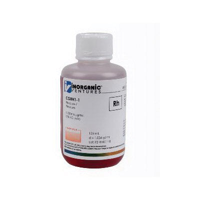 Inorganic Ventures' 1000 ppm (µg/mL) Rhodium for ICP is a certified reference material set in a hydrochloric acid matrix for stability. This rhodium standard is Traceable to NIST and manufactured in accordance with Inorganic Ventures' stringent Quality Assurance guidelines.
