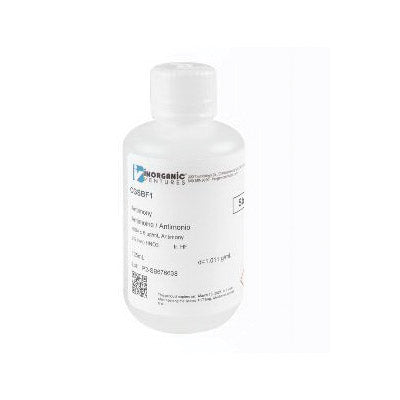 Inorganic Ventures' 1000 ppm (µg/mL) Antimony for ICP is a certified reference material set in a nitric acid / hydrofluoric acid matrix for stability. This antimony standard is Traceable to NIST and manufactured in accordance with Inorganic Ventures' stringent Quality Assurance guidelines.