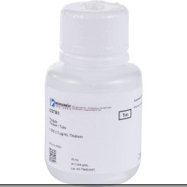 Inorganic Ventures' 1000 ppm (µg/mL) Thulium for ICP is a certified reference material set in a nitric acid matrix for stability. This thulium standard is Traceable to NIST and manufactured in accordance with Inorganic Ventures' stringent Quality Assurance guidelines.
