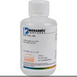 Inorganic Ventures' Calibration Standard 4B is a certified reference material set in a nitric acid (tr. hydrofluoric acid) matrix for stability. This standard is Traceable to NIST and manufactured in accordance with Inorganic Ventures' stringent Quality Assurance guidelines.